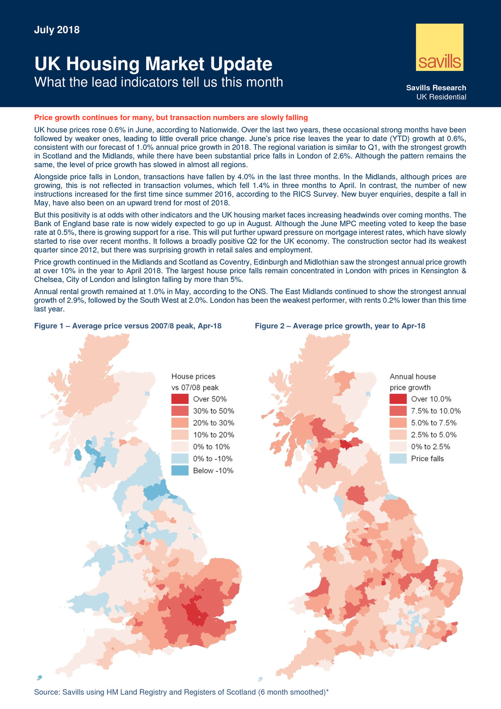 Savills: UK Housing Market Update (July, 2018)